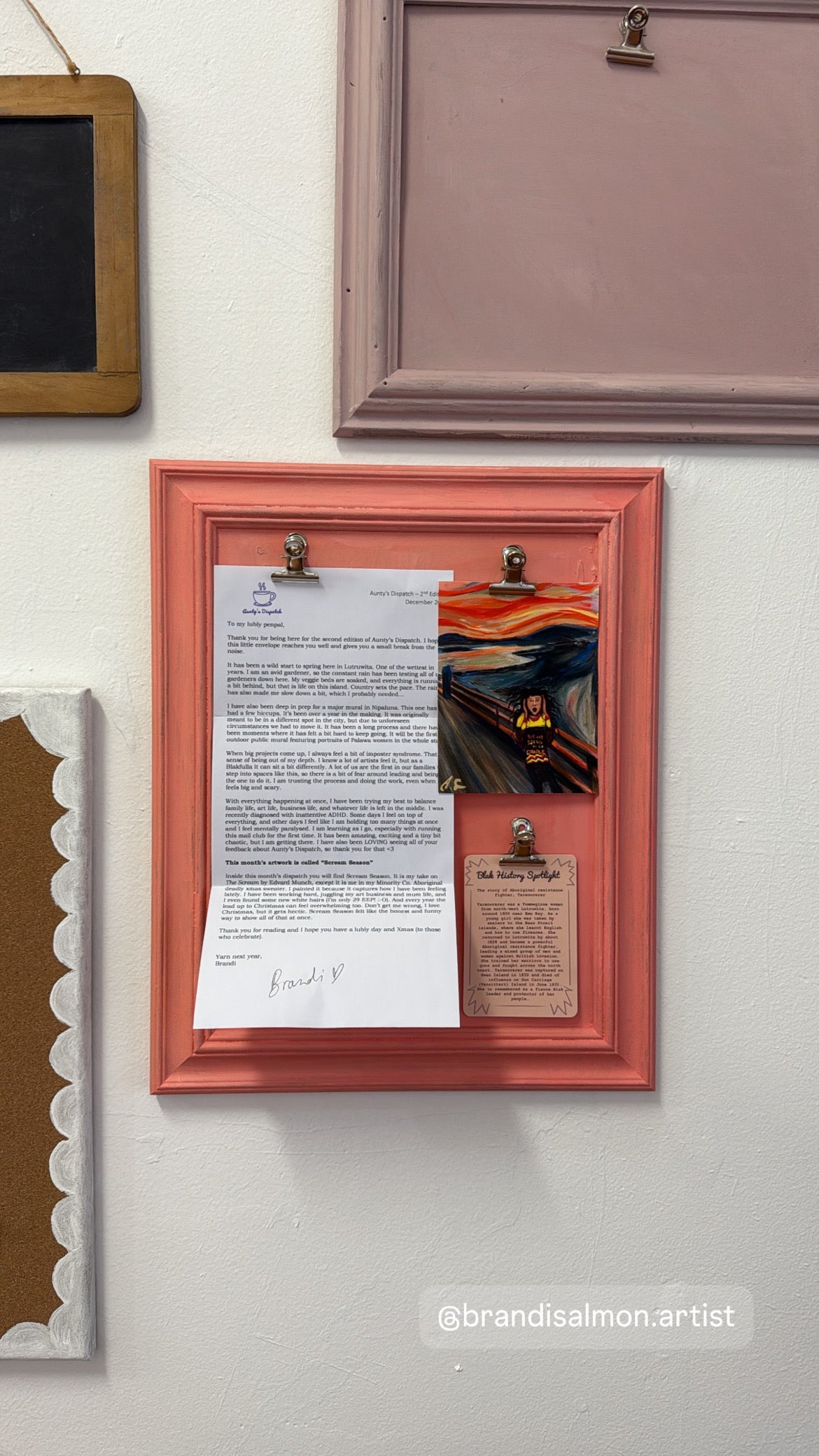 Created by Brandi Salmon, a Wiradjuri artist living and working on Palawa Country in Lutruwita (Tasmania, Australia), this monthly snail mail club is all about slowing down and connection through art and story.